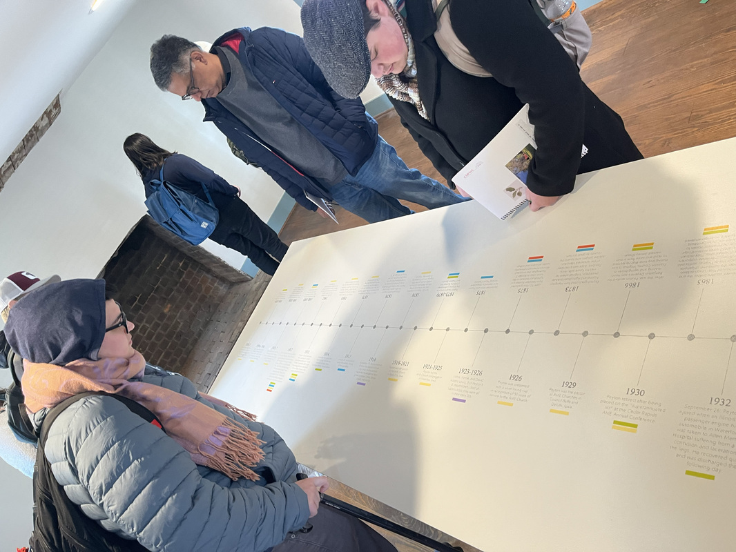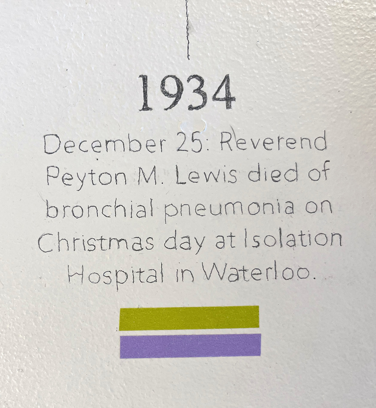 The second component of the installation is a hand-drawn timeline outlining Reverend Lewis’s remarkable life. This timeline includes the date of every piece of evidence I found in various archives that he left behind as proof of his existence. The content is color-coded to direct visitors to folders in a corner of the room that contain further information about different aspects of Reverend Lewis’s life.
